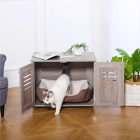 Large Cat Litter Box Enclosure, Litter Box Furniture, Brown, 35.8X20.47X19.88"